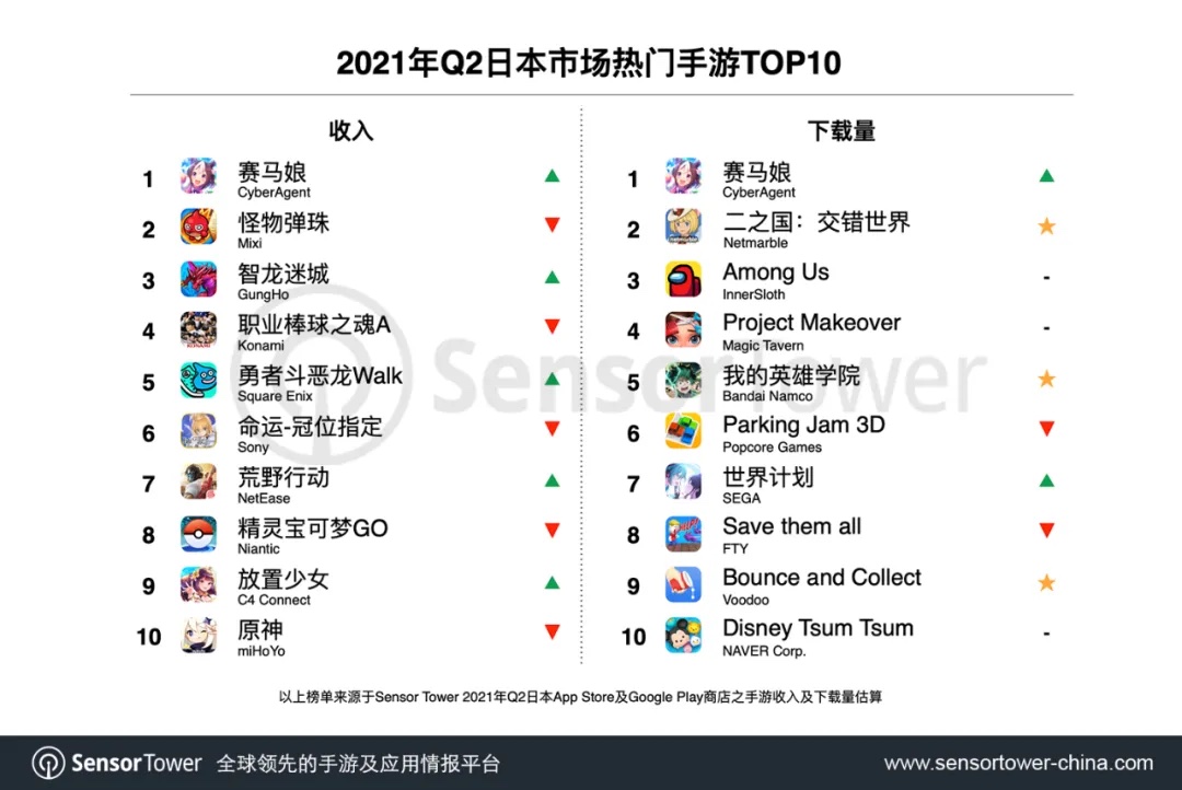 进入2021年,日本手游商场不断为业界带来新的惊喜 ,继Q1收入规划创新高之后,本期《赛马娘》收入逾越《怪物弹珠》,成为近年来最成功的新游。作为海外第二大手游商场,日本商场正展示出新的机会,一起成为更多我国厂商收入添加的重要来历。