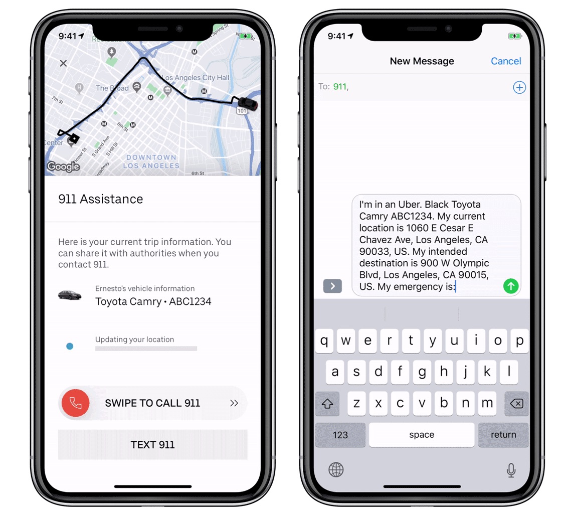 Uber 现在答应用户在搭车时运用预先填写的信息发送 911 短信,其间包含轿车制造商、年份和色彩、当时的方位、目的地,以及供给填写紧急状况内容的区域