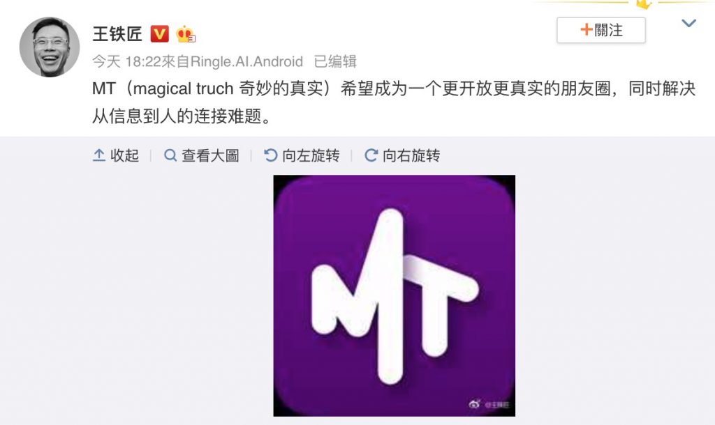 上也给出这款使用的新界说:MT(magical truth 美妙的实在)期望成为一个更敞开更实在的朋友圈,一起处理从信息到人的衔接难题。